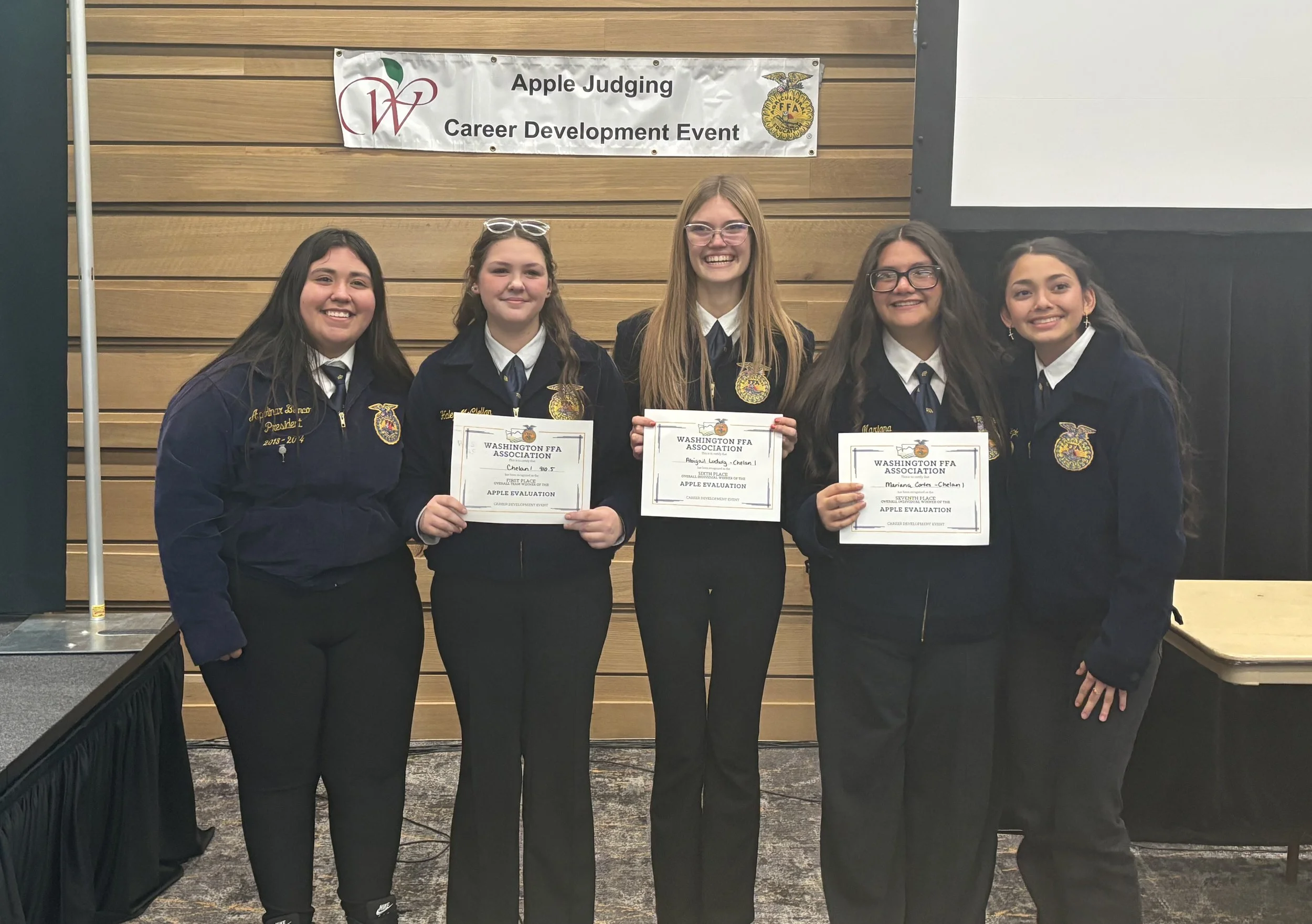 Participation in the Apple Evaluation CDE helps FFA members further develop their interest in apple selection, management and production, while simultaneously advancing teamwork, leadership and communication skills. This event tests participants’ knowledge of Washington’s most famous crop through a written exam and team challenge that includes apple grading and disease identification, as well as in-depth knowledge of the harvesting and sale of apples.